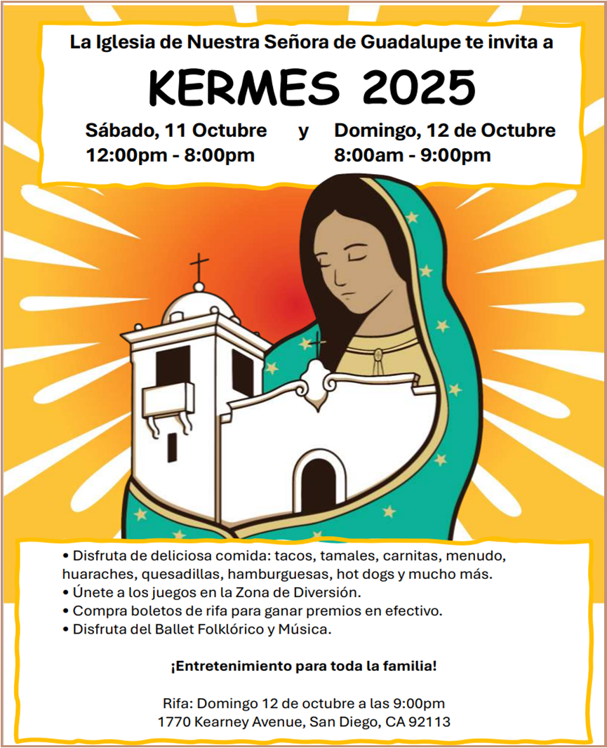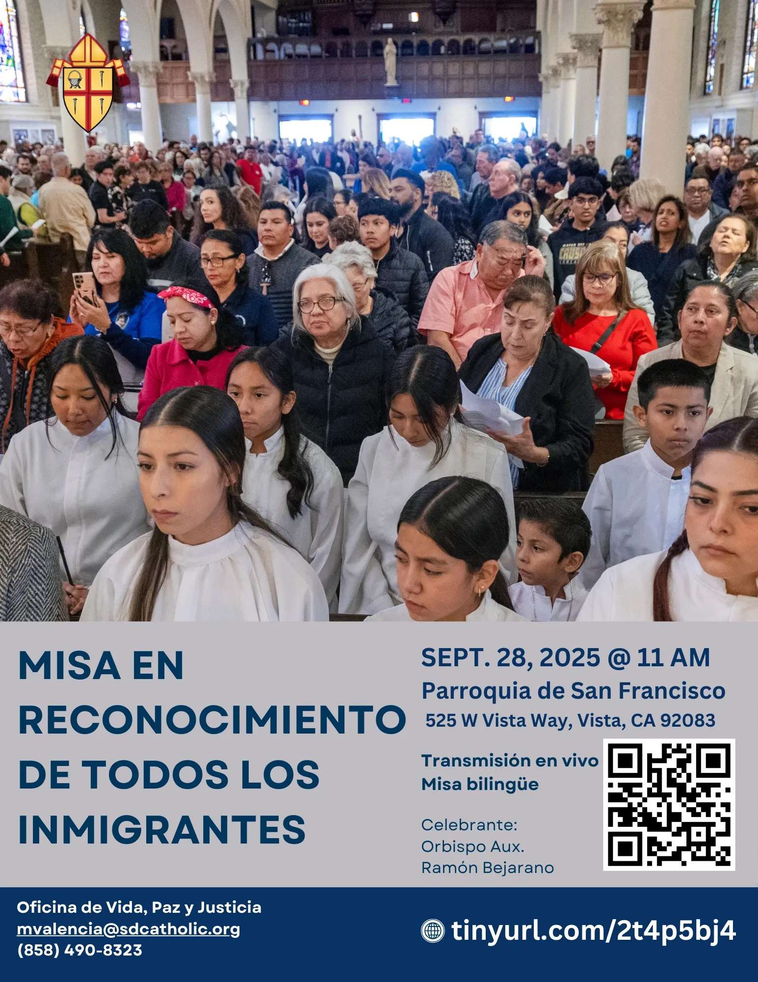 La Diócesis de San Diego celebrará una Misa especial en Reconocimiento de Todos los Inmigrantes el 28 de septiembre a las 11 am en la Parroquia de San Francisco de Asís (525 W Vista Way, Vista, CA 92083).