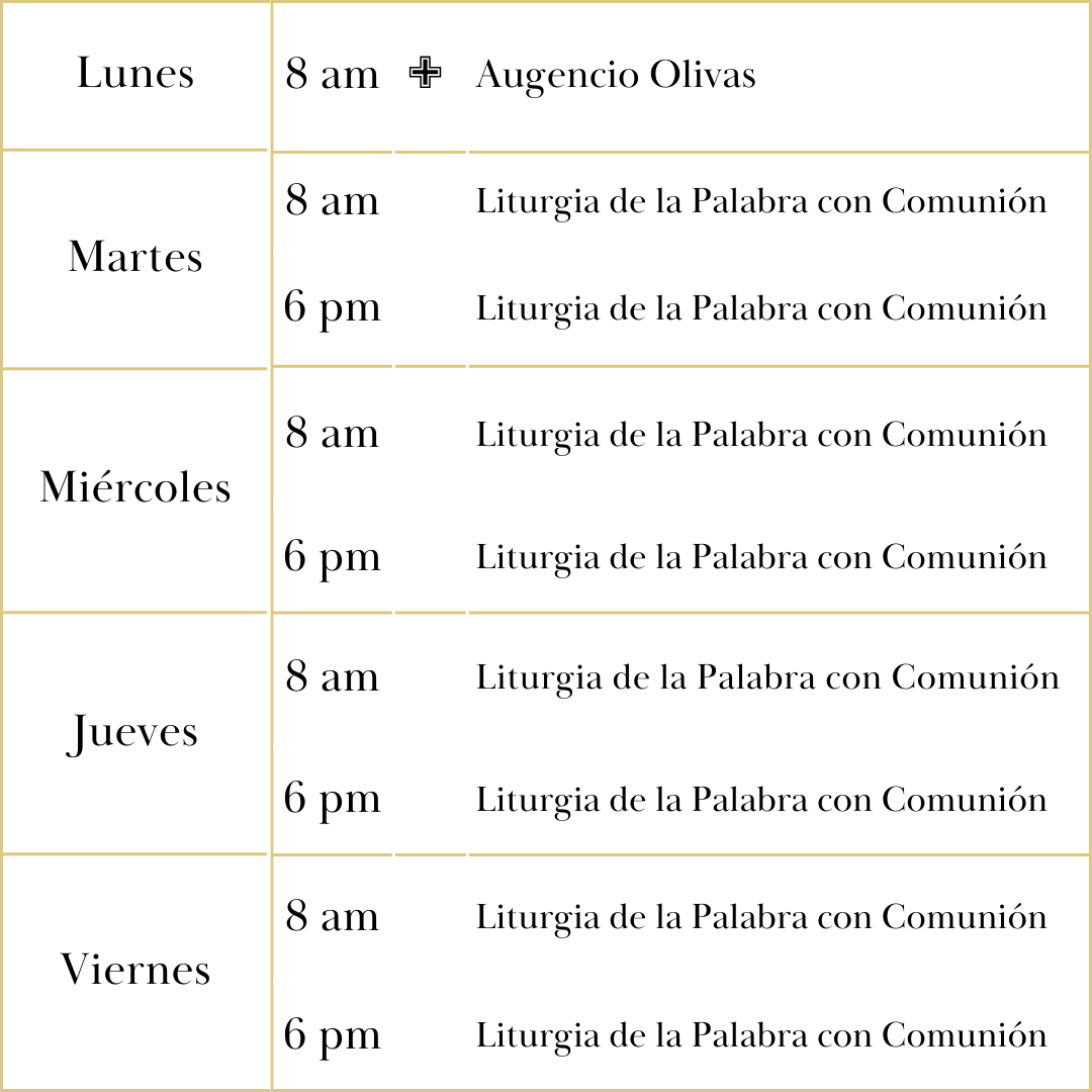 Del martes 22 al viernes 26 de septiembre se celebrará la Liturgia de la Palabra con Comunión.