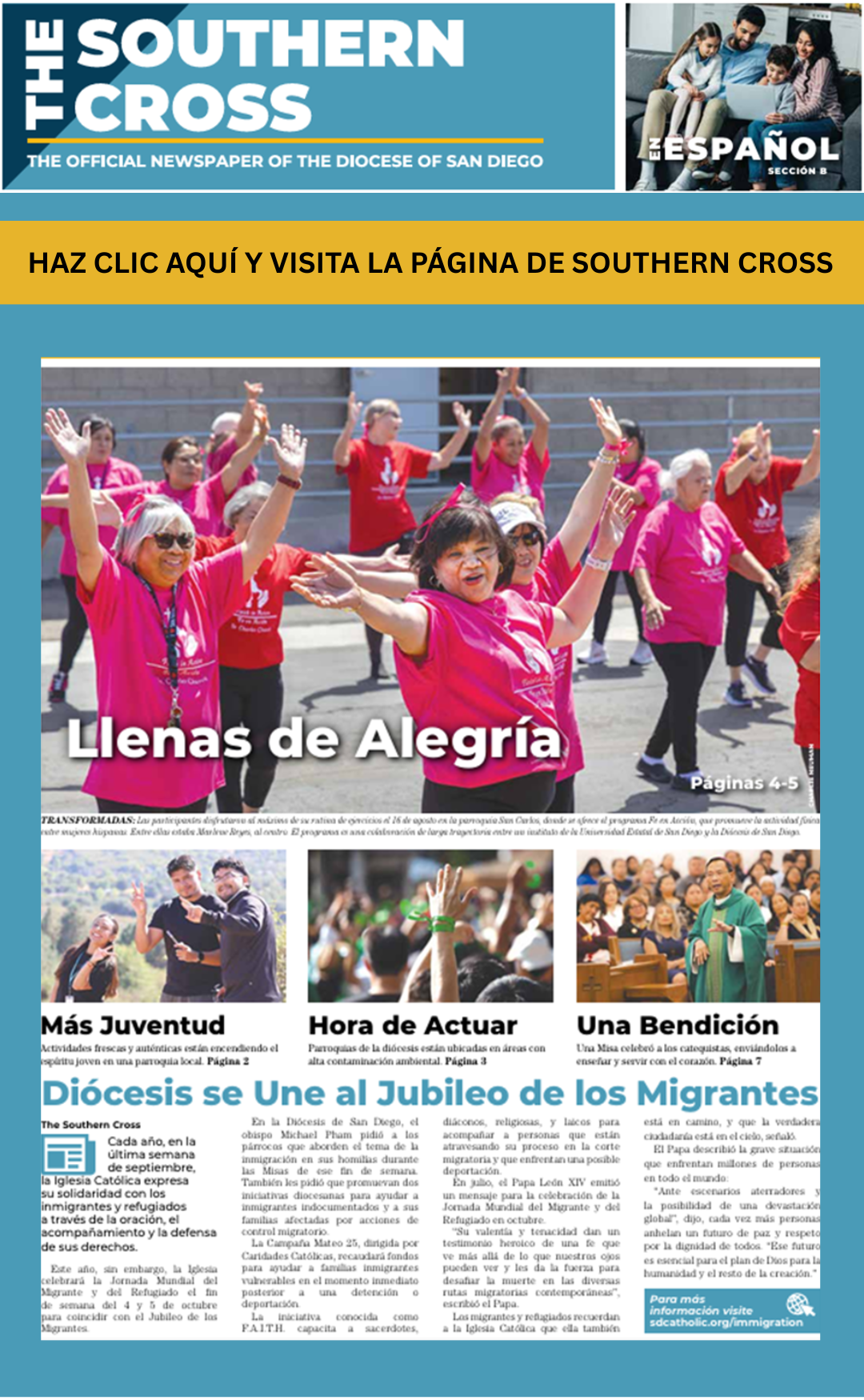 Al día siguiente, tras una conferencia de prensa frente al ayuntamiento, algunos de nuestros miembros expresaron su esperanza de que el Consejo aprobara esta ordenanza. “Hay más de 2,000 personas esperando su respuesta”, dijo Eva, una de nuestras feligresas, a la concejal Vivian Moreno y a otros concejales, “y esperan que digan ‘sí’. Yo soy su voz para llevarles su respuesta. Por favor, tengan un corazón abierto con nosotros, ya que todos estamos sufriendo con nuestros hijos. Tenemos padres y madres que tienen miedo… Esperamos su apoyo y su ‘sí’ para poder llevárselo”. ¿Y qué pasó? El Consejo escuchó la voz de Eva y respondió que sí. Al día siguiente, el martes, Brenda, una joven adulta de nuestra parroquia, hizo lo mismo en la reunión de la Junta de Supervisores del Condado. “Junto con SDOP nos hemos reunido con más de 650 personas… Estoy aquí para ser la voz de mis hermanos y hermanas inmigrantes que están siendo perseguidos… ¿No ven cómo sufren sus comunidades o van a elegir mirar hacia otro lado?” Los Supervisores también escucharon la voz de Brenda y votaron a favor. Uno de los funcionarios electos dijo después: «En esta sola reunión escuché más angustia y dolor que en todos los cinco años anteriores».