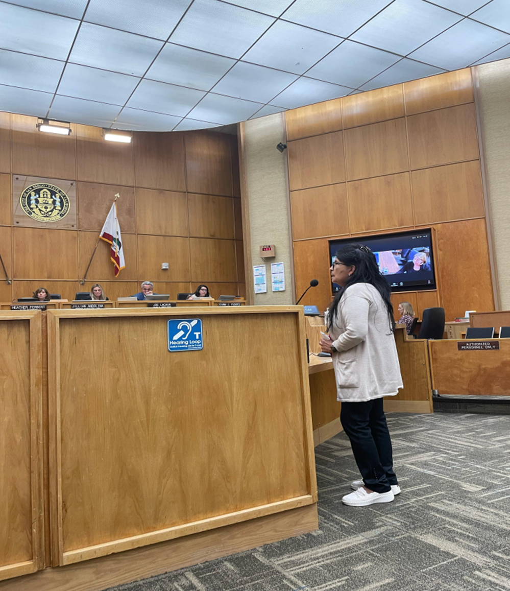 The following day, after a press conference in front of city hall, some of our members were able to voice their hope that the Council would pass this ordinance. “There are more than 2,000 persons awaiting your response,” said Eva, one of our parishioners to Councilmember Vivian Moreno and other Councilmembers, “and they hope you will say ‘yes.’ I am your voice to take your response back to them. Please have open hearts to us as we are all suffering with our kids. We have parents and mothers who are afraid . . . We are waiting for your support and your ‘yes’ so I can take it back to them.” And what happened? The Council heard Eva’s voice and answered yes. The next day, on Tuesday, Brenda, a young adult from our parish, did the same thing at the County Board of Supervisors meeting. “Together with SDOP we have gathered with over 650 people . . . I am here to be the voice of my immigrant brothers and sisters who are being persecuted . . .Do you not see how your communities are suffering, or are you going to choose to look away?” The Supervisors also heard Brenda’s voice and voted in favor. One of the elected officials said afterwards, “In this one meeting I heard more anguish and pain than in the entire five years before.”