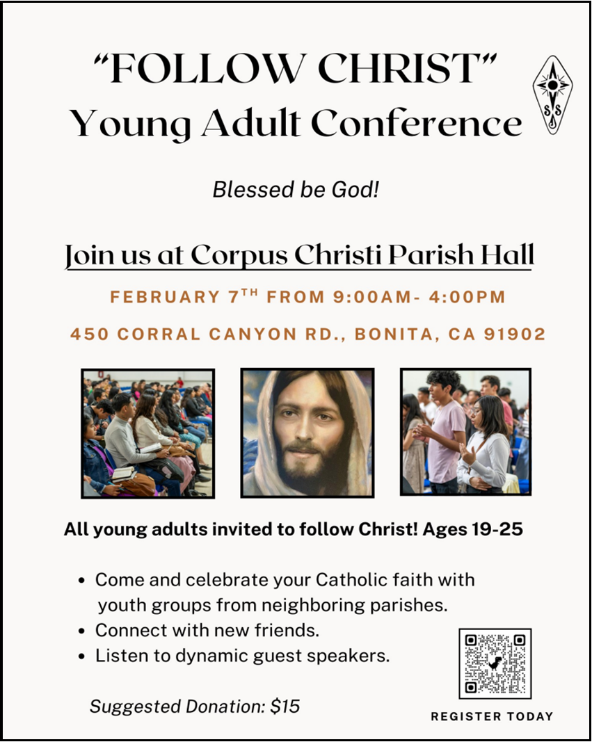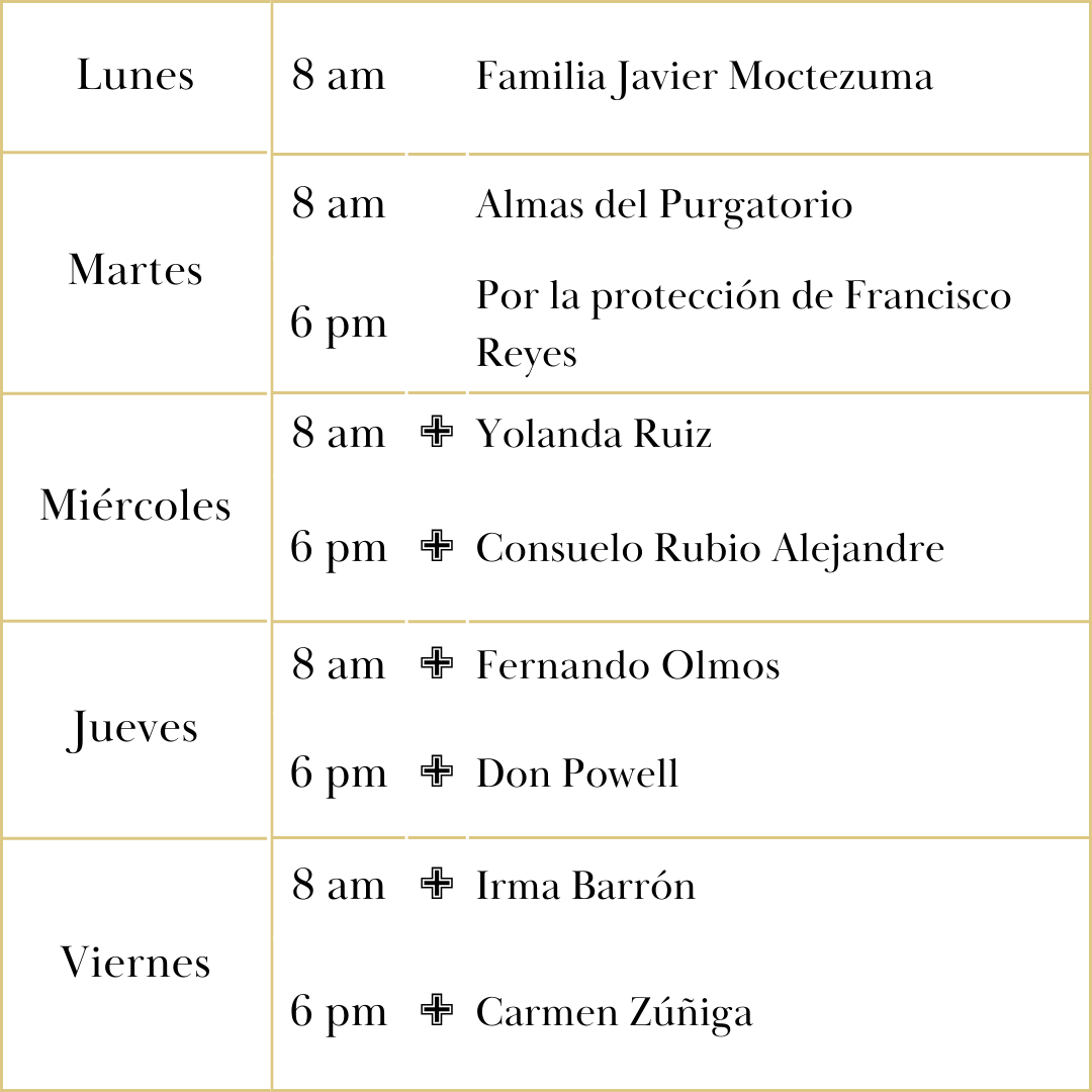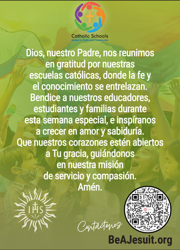 Más que nunca, los jóvenes necesitan saber cuánto valen. La tentación de caer en la oscuridad puede ser muy grande. Una de las maneras en que Nuestra Señora de Guadalupe nos ayuda es a través de la Escuela de Nuestra Señora (Our Lady’s School). La misión de nuestra escuela es ayudar a los estudiantes a comprender que son hijos e hijas de Dios, seres hermosos por dentro y por fuera. También los preparamos para ingresar a escuelas secundarias católicas y otras escuelas de alto nivel. En los últimos años, nuestros resultados de admisión a estas escuelas secundarias han sido excelentes: el 95% de nuestros alumnos de octavo grado que se gradúan asisten a una escuela secundaria católica o privada, lo que los encamina hacia el éxito. Nuestra misión principal es recordarles a los estudiantes que son amados. Al celebrar la Semana de las Escuelas Católicas, celebraremos a los increíbles estudiantes, padres, maestros y a toda la comunidad de la Escuela de Nuestra Señora. Si desea obtener más información, comuníquese con la Sra. Ziment (jziment@olssd.org).