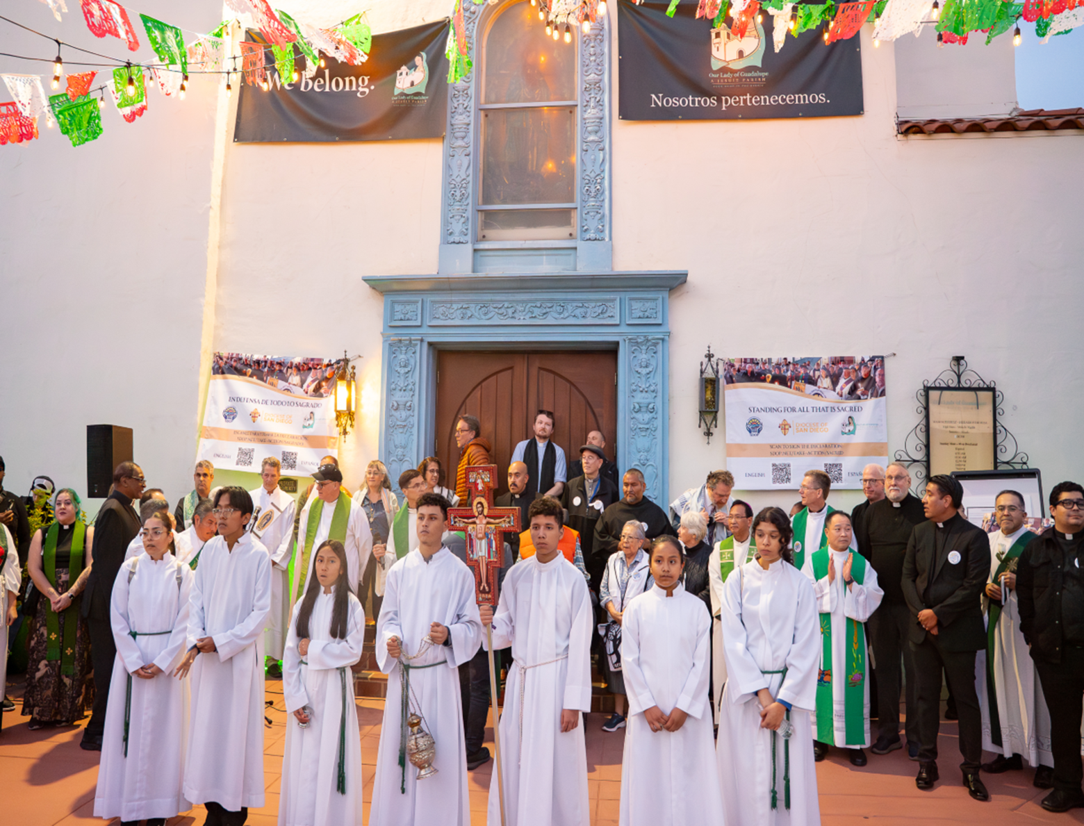 Pero en esta iglesia, quienes la visitan encuentran lo que buscan. Muchos me han dicho que les recuerda a una iglesia en México y que les hace sentir como en casa. También encuentran una comunidad vibrante y acogedora. Y ahora la gente viene a nosotros porque estamos dispuestos a poner nuestra fe en acción, a organizarnos, a salir al encuentro de los demás para generar cambios positivos en nuestra ciudad, condado y país. La procesión del domingo pasado por Barrio Logan, con 1500 personas, fue una muestra de ello. Nuestra riqueza no reside en la decoración, y bajo mi liderazgo nunca lo será. Más bien, nuestra riqueza está en lo que llevamos dentro: las personas y nuestro deseo de acompañarlas en sus vidas tal como son.