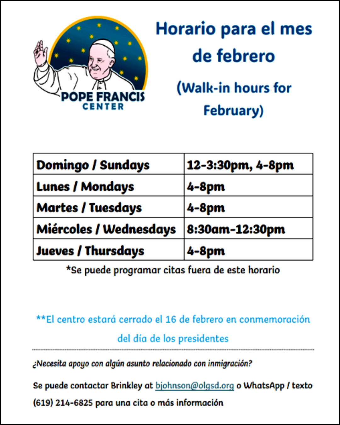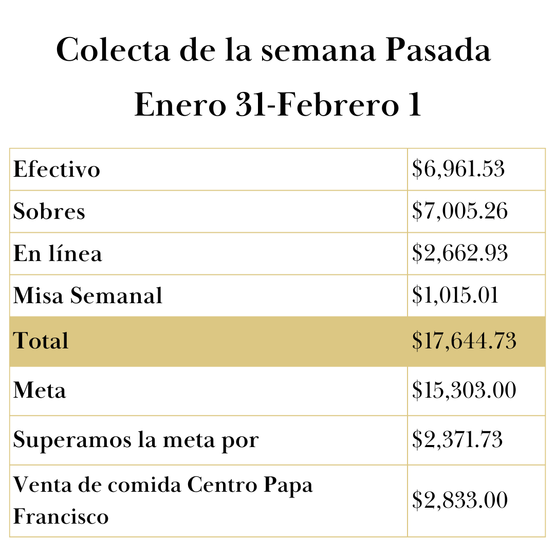 La parroquia de Nuestra Señora de Guadalupe ha estado mucho en las noticias últimamente. Hace dos semanas, una procesión con unas 1500 personas terminó frente a nuestra parroquia, donde juntos coreamos nuestro lema: “Nosotros Pertenecemos”. Hace una semana se inauguró el Centro Papa Francisco, nuestro nuevo ministerio de acompañamiento a inmigrantes. Me conmovió la cantidad de personas que asistieron, los hermosos bailarines aztecas, las sonrisas en los rostros de la gente y las palabras de los oradores invitados. Escuché una frase repetirse una y otra vez: la gente está feliz de que algo positivo esté sucediendo para ayudar a los inmigrantes ante el rechazo y la hostilidad que enfrentan en nuestro país. Si bien abrimos este Centro para servir principalmente a ustedes, nuestros feligreses, por supuesto, está abierto a todos, como debe ser. Porque nuestros padres nos enseñaron lo que Jesús nos enseña: Es mejor dar que recibir. Cuando servimos, somos sal, somos luz, somos el corazón que nuestra parroquia está llamada a ser.